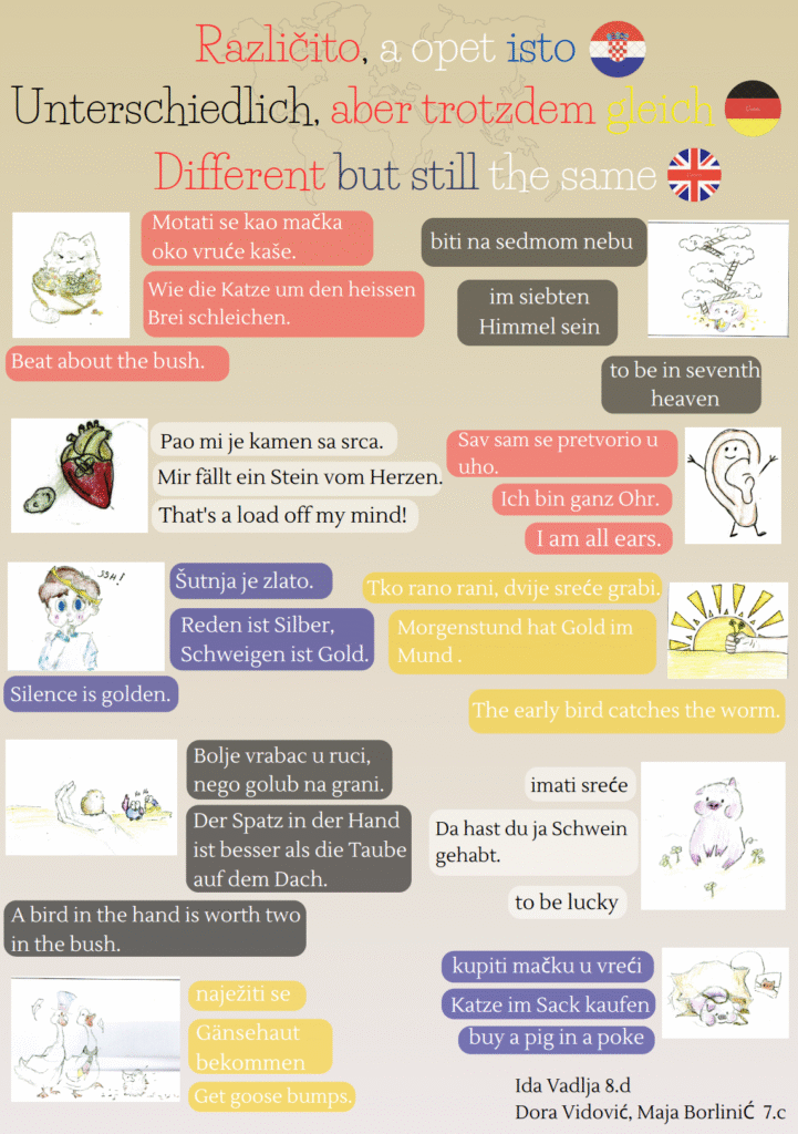 Učenici su sudjelovali u igrama, kvizovima i istraživačkim zadacima, izrađivali plakate te istraživali poznate izreke na različitim jezicima. Svoje su radove izložili na panou u učionici, koji su zajednički uredili i pretvorili u šarenu i poučnu izložbu posvećenu jezicima svijeta.