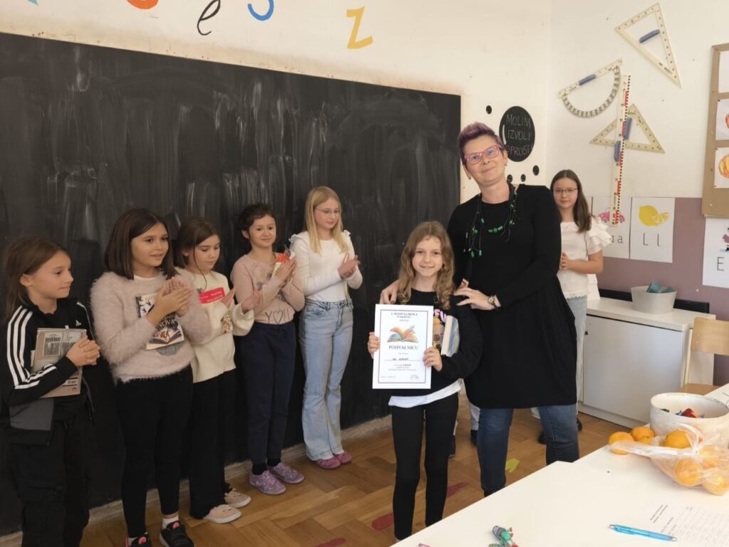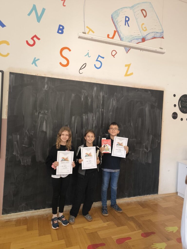 Nakon što su predstavili svoja najdraža djela i pročitali ulomak iz istog, povjerenstvo je imalo težak zadatak odabrati po jednog najčitača u mlađoj i starijoj kategoriji. Tako će našu školu na županijskoj razini natjecanja predstavljati Zoa Šopar (4.c), koja je čitala iz fantastične knjige Šuplji grad, i Ivanka Poljak (6.b) koja nam je predstavila knjigu Čudo.