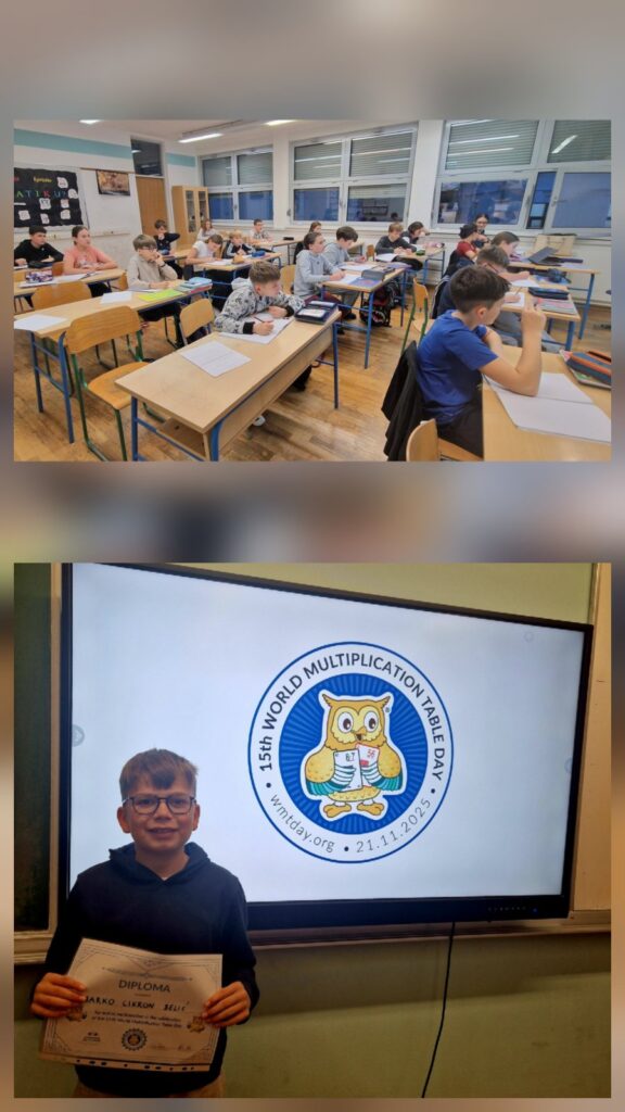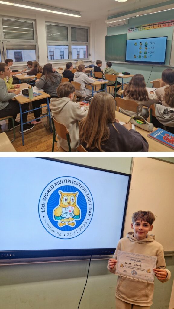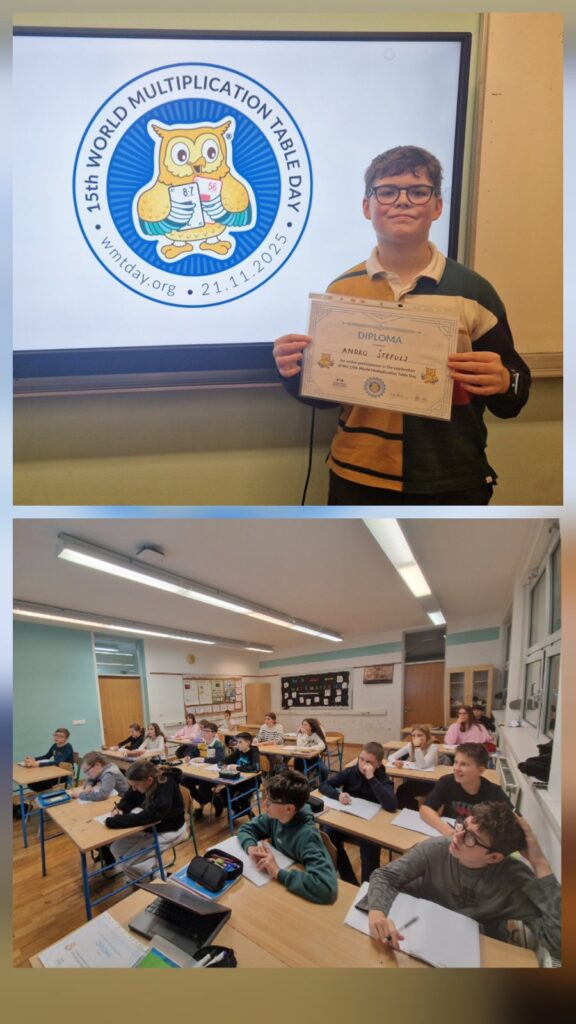 U našoj školi Svjetski dan tablice množenja obilježili su učenici 5. a, 5. b, 5. c i 6. a, 6. b i 6. d razreda, uz svoje učiteljice Tanju Debelec i Željku Kolar. Učenici petih razreda sudjelovali su u nizu zabavnih aktivnosti: izrađivali su matematičke označivače stranica (bookmarkere), sudjelovali u natjecanju iz tablice množenja i osvajali simpatične sovice-nagrade, koje kasnije mogu zamijeniti za dodatne bodove na provjerama znanja. Učenici šestih razreda odmjerili su brzinu i znanje u igri „Koliko sovica vrijedi“.